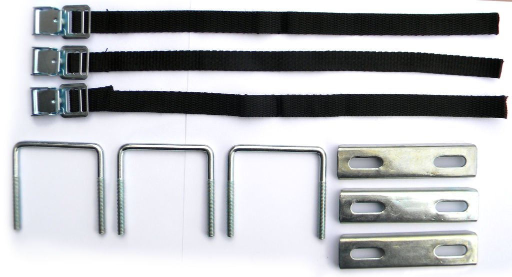 De houder wordt met de meegeleverde klemmen (U-bouten) aan de dakdragers bevestigd. Deze zijn geschikt voor dragers (aluminium en staal) tot 59 mm breed .