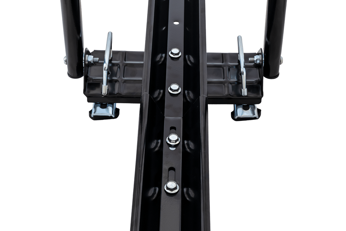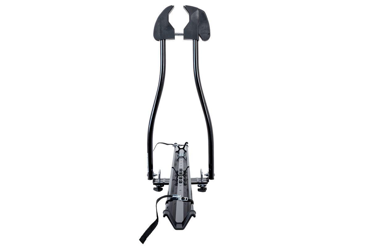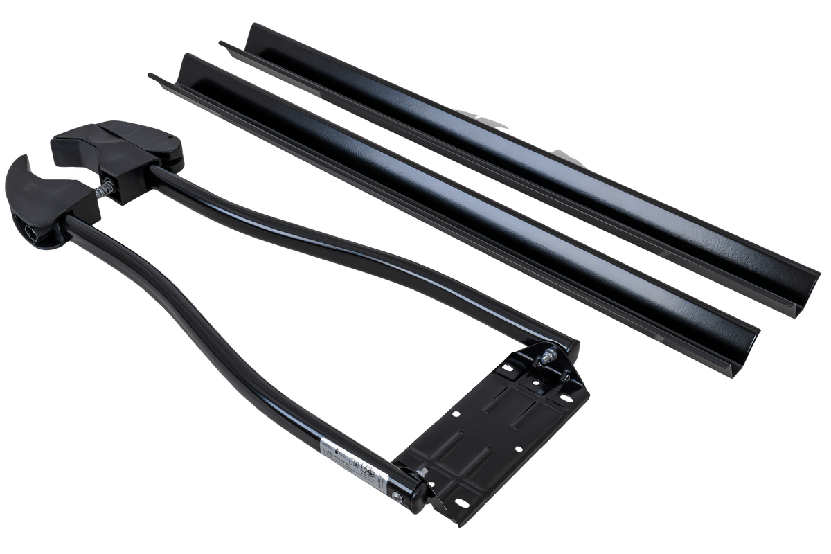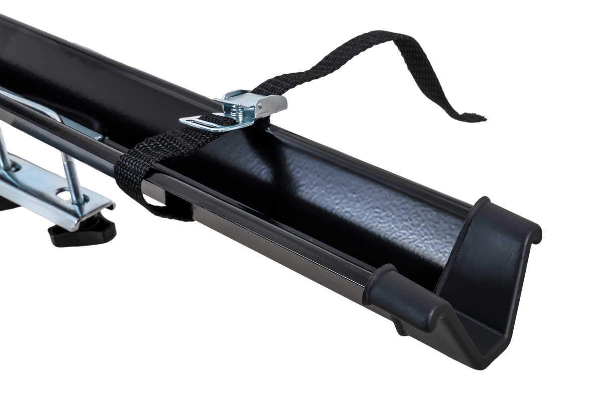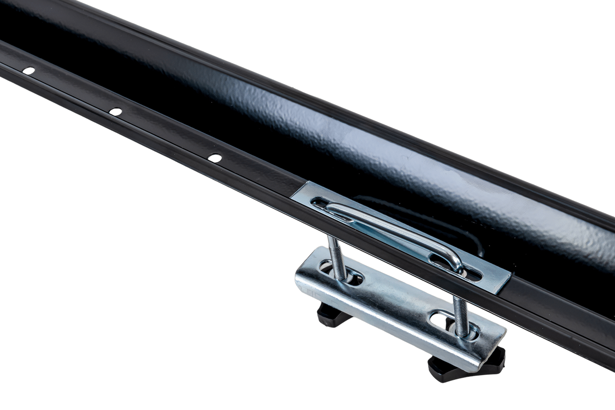 De houder wordt met de meegeleverde klemmen (U-bouten) aan de dakdragers bevestigd. Deze zijn geschikt voor dragers (aluminium en staal) tot 59 mm breed .