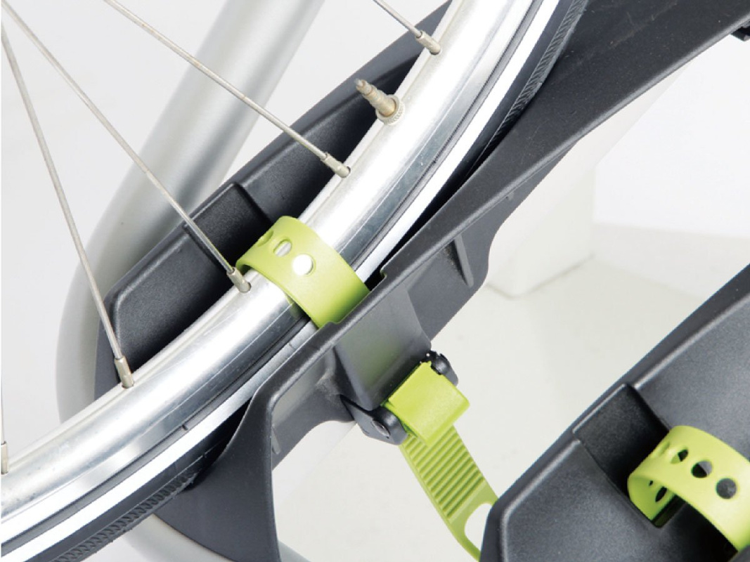 - De fietswielsteunen zijn verplaatsbaar, waardoor het platform geschikt is voor zowel kleinere als grotere fietsen.