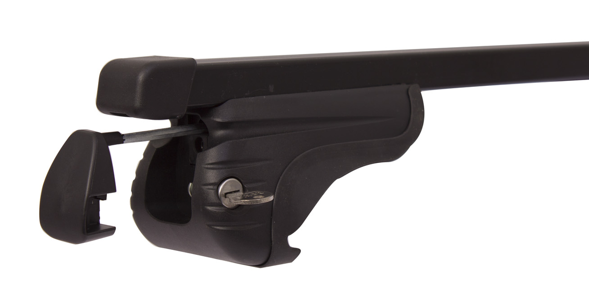 De set bevat stalen balken van 125 cm en vier dakbevestigingen. De bevestigingen zijn ontworpen om beschadiging of krassen op de leuningen te voorkomen.