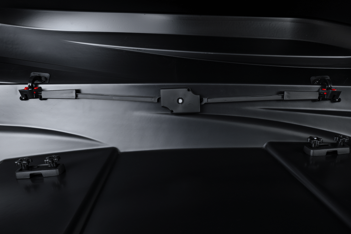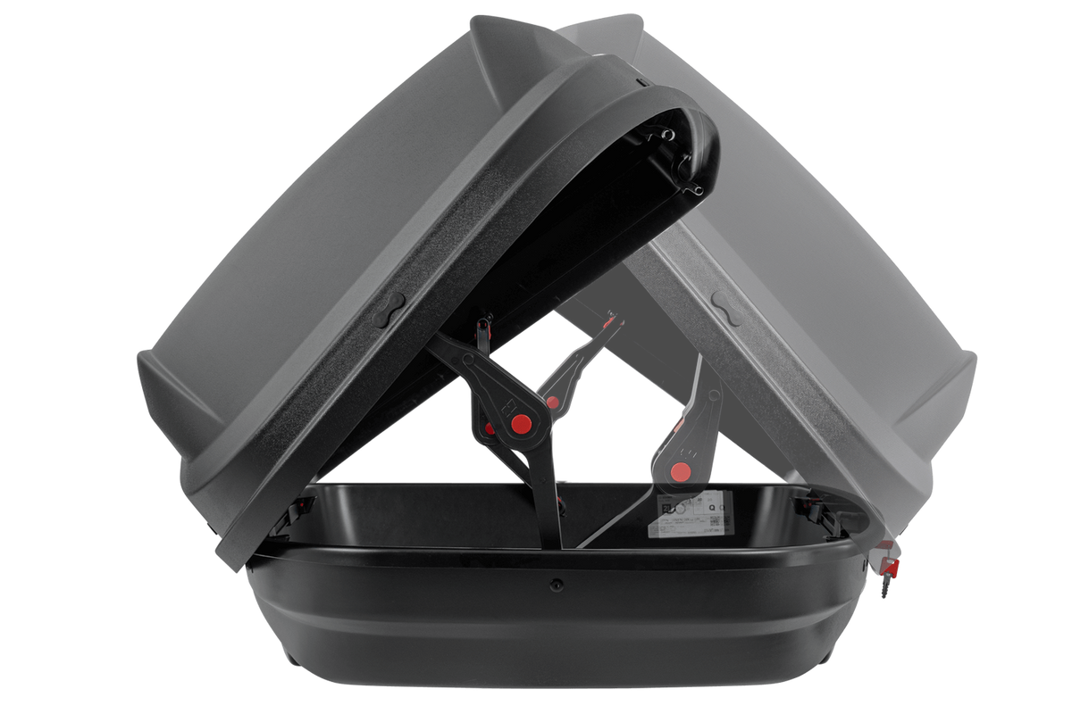 De koffer kan aan beide kanten worden geopend en wordt ondersteund door veerbelaste actuatoren , waardoor het deksel gemakkelijk en stabiel omhoog gaat, wat het in- en uitladen vergemakkelijkt. Een centraal tweepuntsvergrendelingssysteem verhoogt de veiligheid van uw bagage. De Stella 440 is gemaakt van uv- en temperatuurbestendig materiaal, waardoor hij vele seizoenen lang weerbestendig is.