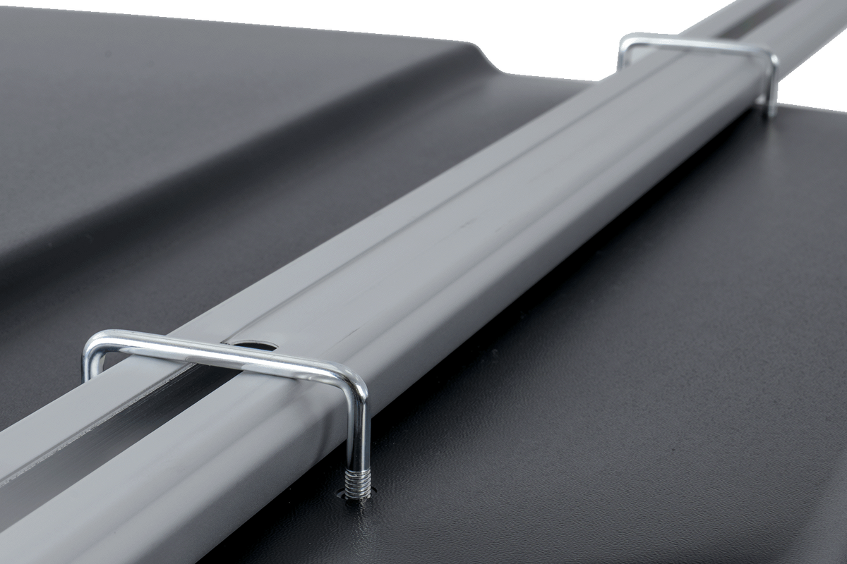 De doos wordt gemonteerd met behulp van U-klemmen (U-bouten) die op rechthoekige of ovale dakbalken passen.