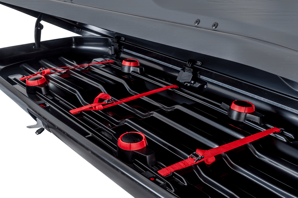 De set bevat ook textielbanden. om bagage vast te zetten (de Casar-box heeft speciale plekken om riempjes aan te bevestigen).