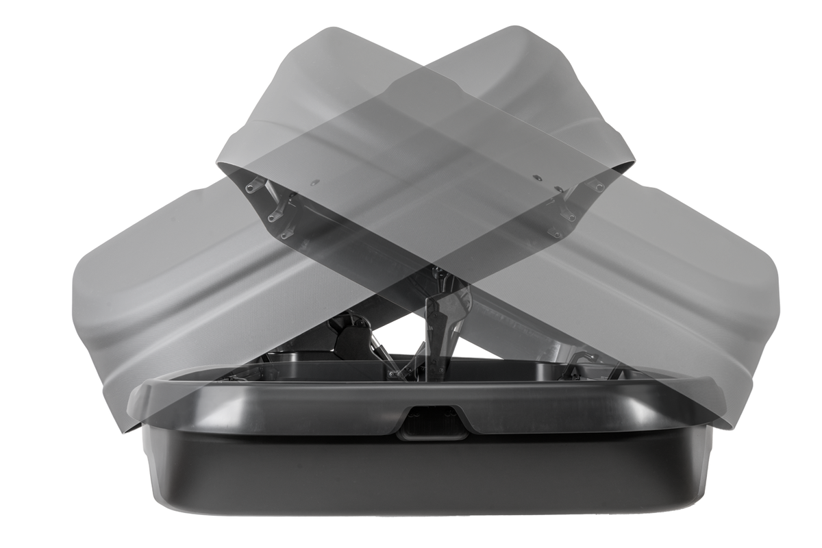 Dit model heeft een modern design en een duurzame constructie van uv- en weerbestendig ABS- kunststof , weegt slechts 16 kg en heeft een maximaal draagvermogen van 75 kg . Het onderste deel van de koffer is speciaal geprofileerd en extra verstevigd met twee metalen strips voor extra stevigheid. Het tweezijdige openingssysteem vereenvoudigt het laden en openen van de koffer aanzienlijk, ongeacht de zijkant van het voertuig. Een centraal driepuntsvergrendelingssysteem garandeert een hoge mate van veiligheid voor de vervoerde goederen. Een extra veiligheidsmaatregel is het ingebouwde systeem waarmee de sleutel alleen uit het slot kan worden gehaald als het deksel goed gesloten is.
