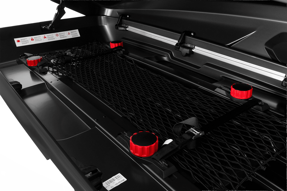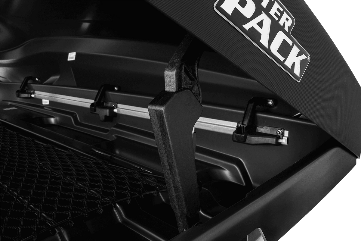 - De Inter Pack Monsun M dakkoffer, met een inhoud van 470 liter en een lengte van 186 cm, biedt plaats aan koffers, tassen, ski's en snowboards tot 75 kg. Hij is gemaakt van duurzaam ABS en beschikt over een universeel bevestigingssysteem, een dubbelzijdig