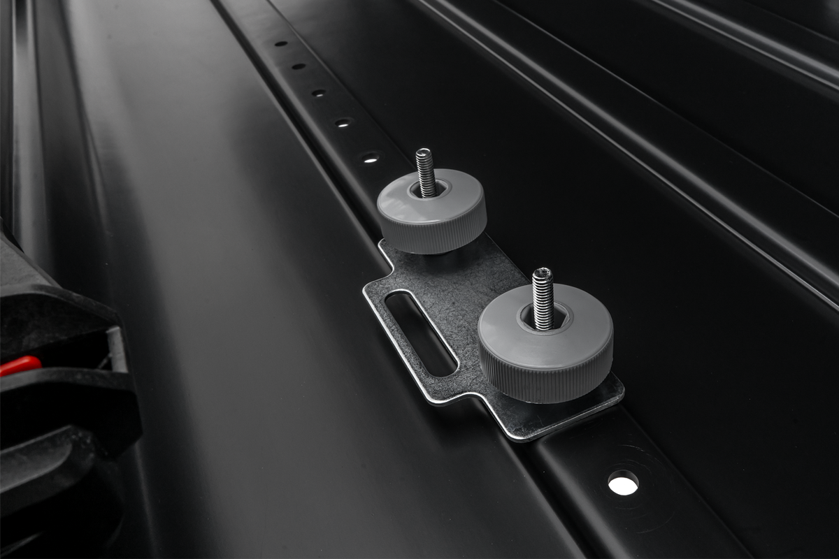 Het montagesysteem maakt aanpassing aan de afstand van de dakdragerstangen mogelijk, die binnen het bereik van 42 cm omlaag 114 cm.