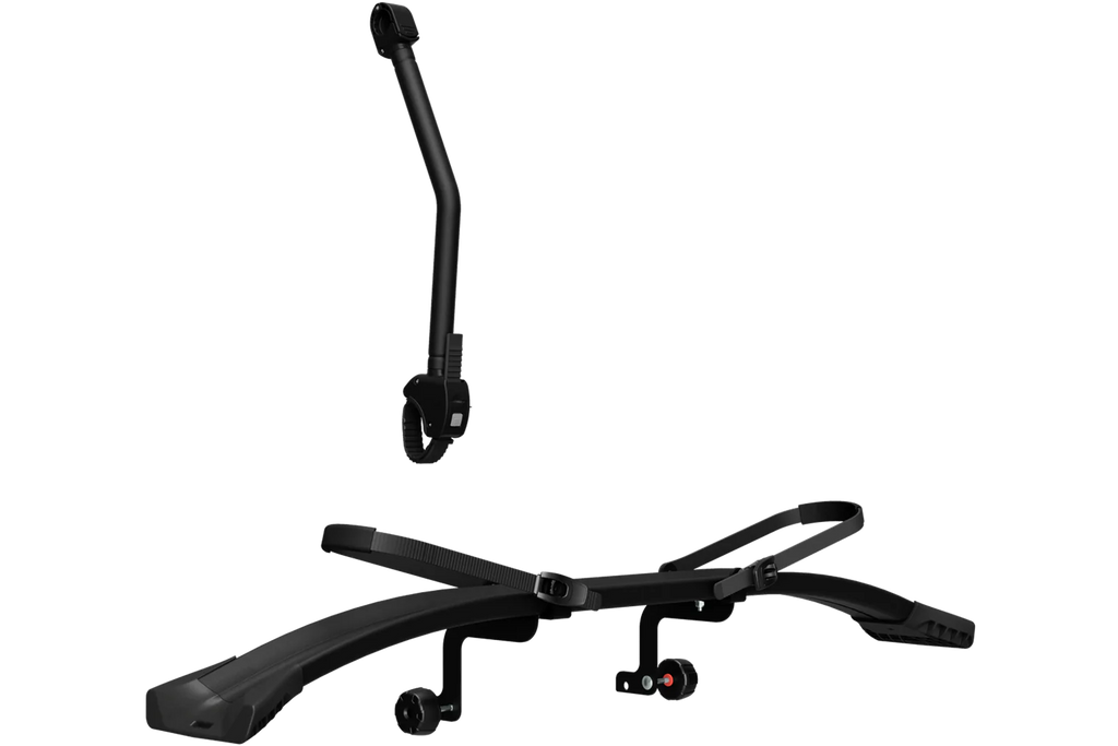 De GP RHEA- adapter is een gespecialiseerde uitbreiding van het modulaire GP SATURN -platform, waarmee u gemakkelijk en veilig één elektrische fiets kunt vervoeren. Deze oplossing is vooral handig voor langere ritten of fietstochten, waarbij stabiliteit en snelle montage essentieel zijn. Dankzij het geïntegreerde Quick Fix- systeem is de adapter in enkele ogenblikken op de basis te monteren, zonder dat u extra gereedschap nodig hebt.