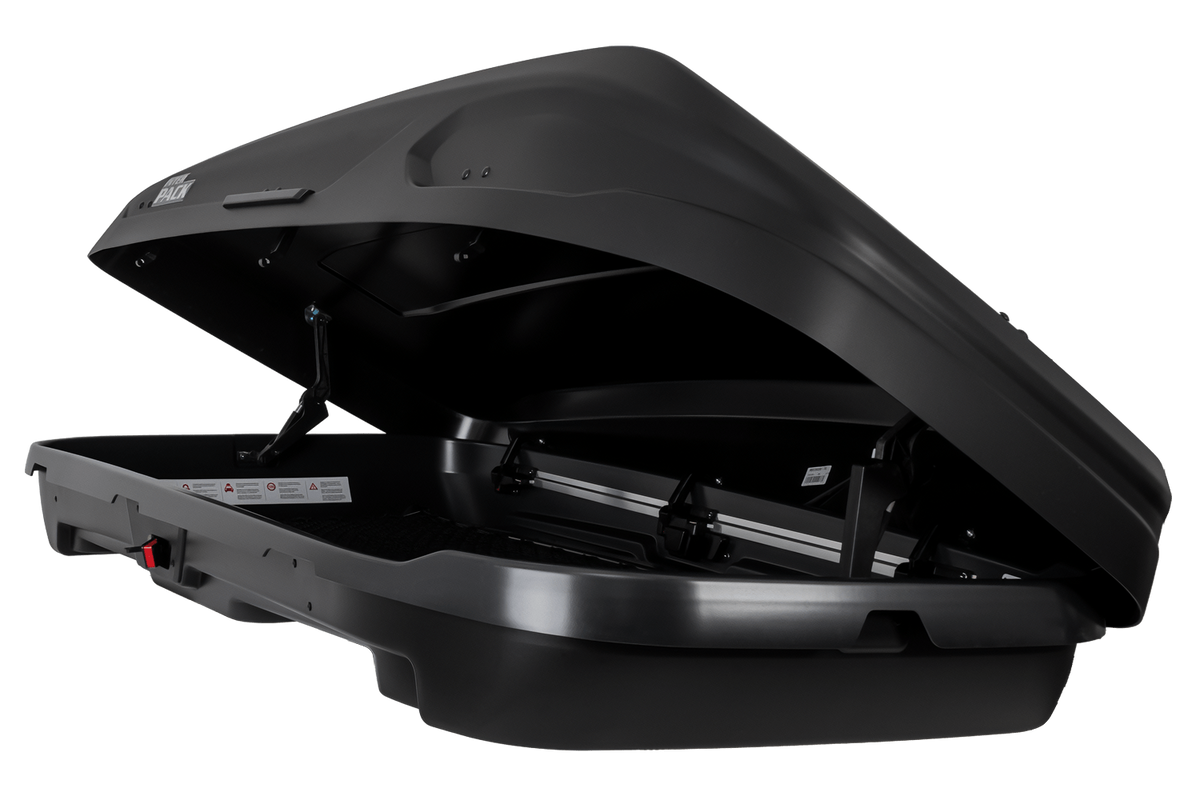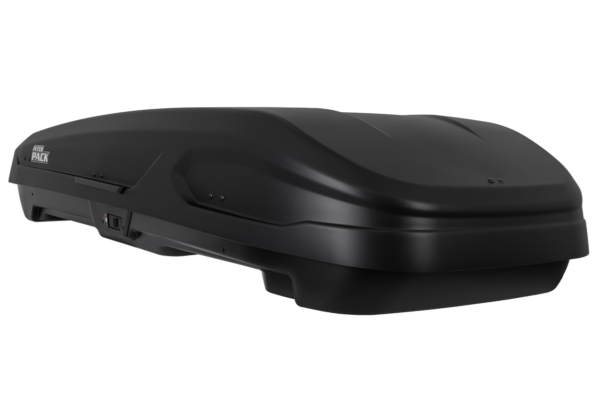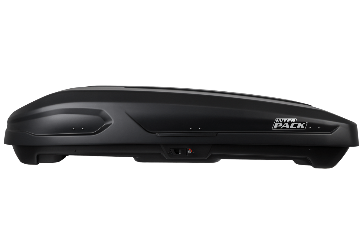 - Inter Pack Monsun PRO M 470L dakkoffer, matzwart. Lichtgewicht en duurzaam, met tweezijdige opening, een Smart Lock-systeem met handige handgreep, Rapid Fit-snelmontage en een binnenruimte van 165 x 72 x 32 cm. Perfect voor reis- en sportuitrusting.