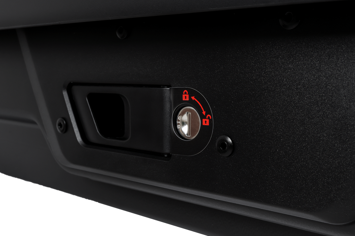 Het tweerichtingsopeningssysteem vergemakkelijkt de toegang tot het interieur vanaf beide zijden van de auto. Een centrale driepuntsvergrendeling zorgt voor veiligheid en de sleutel kan pas worden verwijderd als het deksel goed gesloten is. Het Smart Lock- mechanisme met handgreep geeft aan wanneer het deksel goed gesloten is en automatische vergrendelingen voorkomen onbedoeld openen.