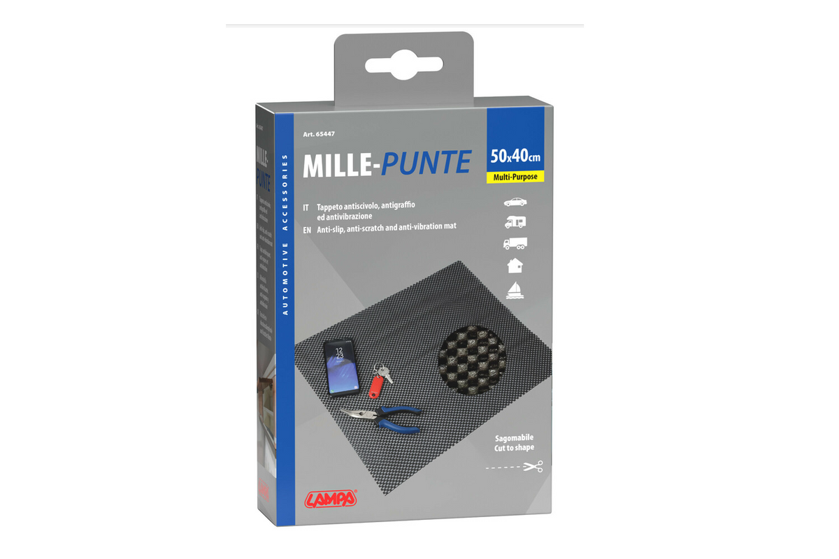 De mat is gemaakt van een flexibel, sterk hechtend materiaal en heeft een antislipstructuur die trillingen dempt en beschermt tegen krassen . Er is geen lijm of magneten nodig, de mat laat geen sporen achter en kan indien nodig op maat worden geknipt . Om de antislipwerking te herstellen, volstaat het om de mat met water te wassen – eventueel met een mild schoonmaakmiddel.