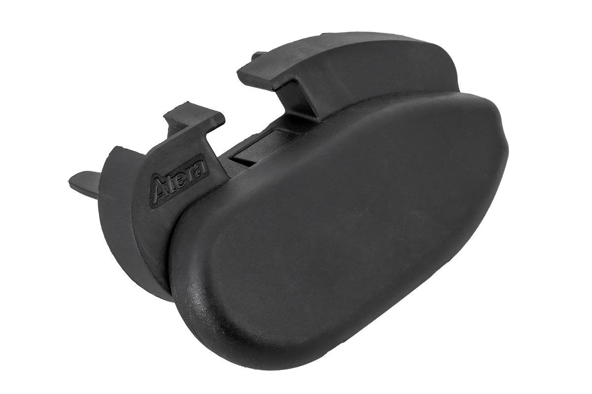 De eindkap (links) voor de aerodynamische aluminium dakdragers van Atera Signo is een afwerkingselement dat het uiteinde van de drager beschermt en de esthetiek van de gehele dakdrager verbetert. Het beschermt de binnenzijde van het profiel tegen vuil en invloeden van buitenaf, wat bijdraagt aan de duurzaamheid van het systeem.
