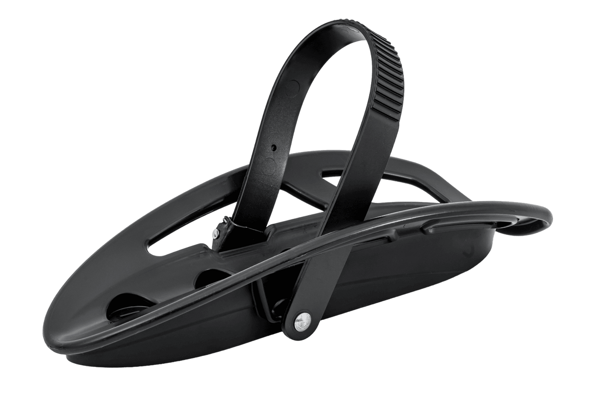 Wielsteun met riem voor het vastzetten van het wiel op Peruzzo Parma fietsendragers voor op de trekhaak.