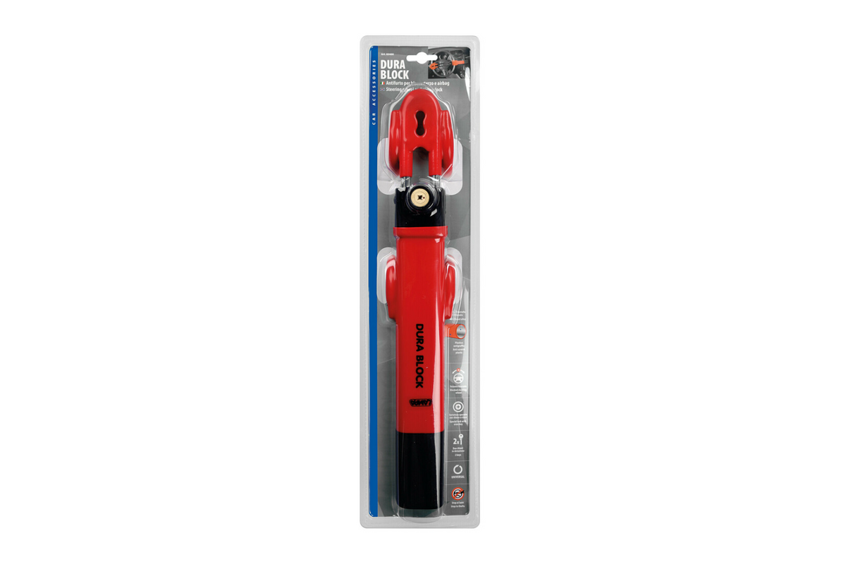 - Het Dura Block stuurslot met zelfvergrendelend systeem en dubbele tanden verhoogt de diefstalbeveiliging van uw voertuig. Gemaakt van gehard staal met een kunststof coating, beschermt het het stuur tegen krassen. Geschikt voor de meeste auto's en inclusie