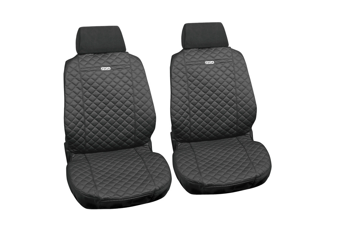 Ziga – een set katoenen stoelhoezen voor de voorstoelen (antraciet) is een functionele oplossing, ontworpen met het oog op rijcomfort en de esthetische aantrekkingskracht van het auto-interieur . De voorkant van de hoezen is gemaakt van dikke, gewatteerde katoenen stof, wat het zitcomfort verhoogt, terwijl het achterste gedeelte is gemaakt van elastisch materiaal voor een nauwsluitende pasvorm. De set bevat ook hoofdsteunhoezen , die het geheel completeren en zorgen voor een samenhangende uitstraling van het interieur.