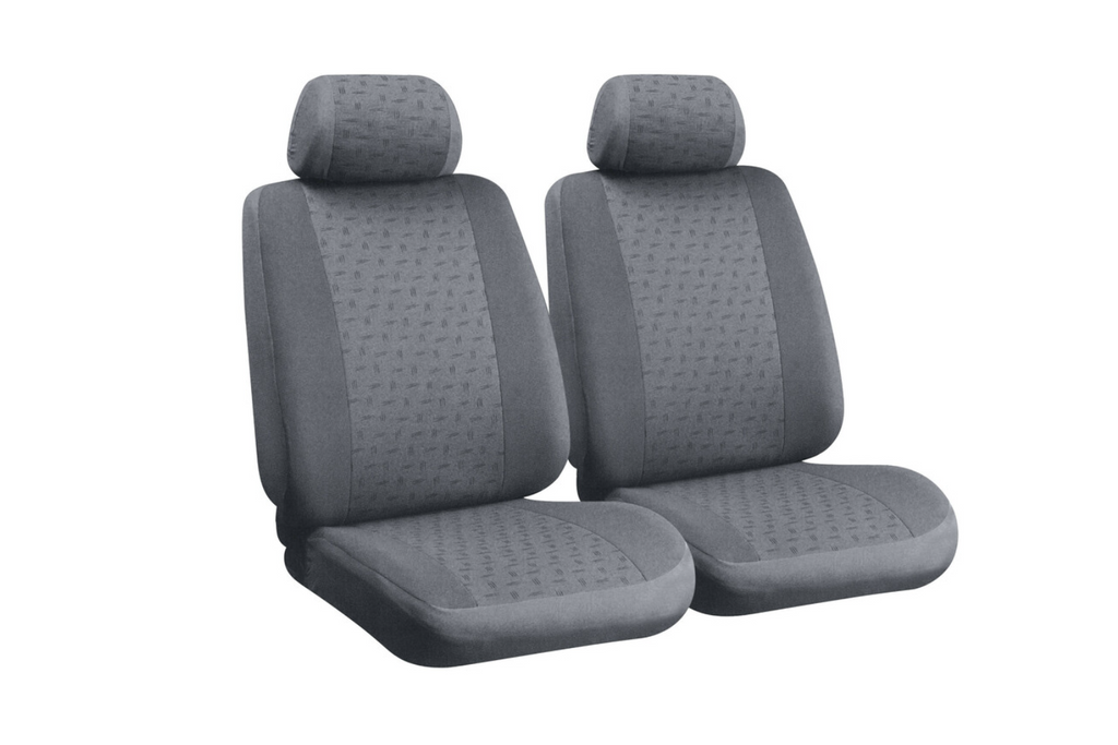 De GLAMUR grijze stoelhoezen van LAMPA vormen een elegante set voor de twee voorstoelen en hoofdsteunen , gemaakt van hoogwaardige jacquardstof. Het materiaal heeft een duurzame structuur en een aangename afwerking , wat het comfort bij dagelijks gebruik verhoogt.